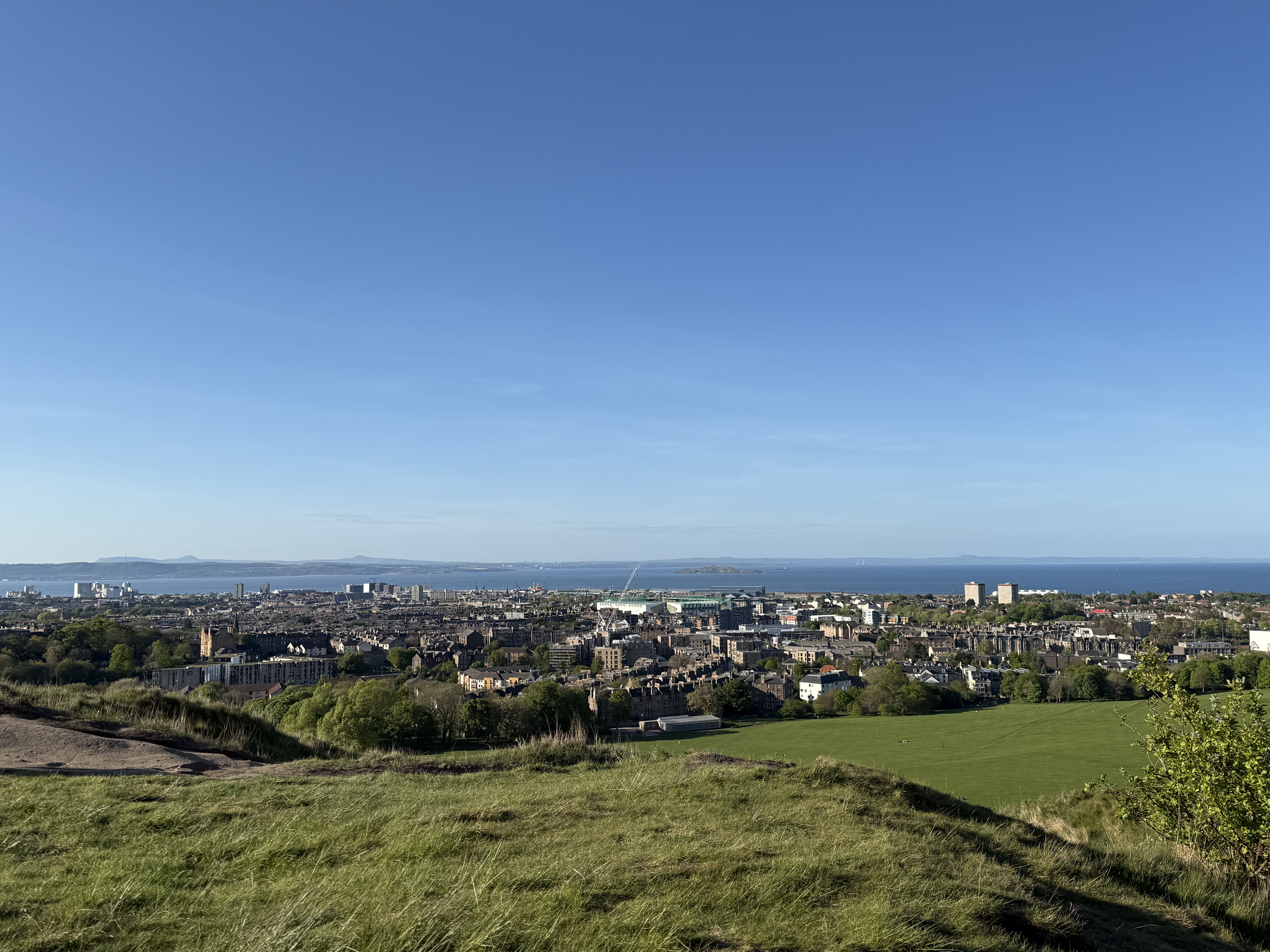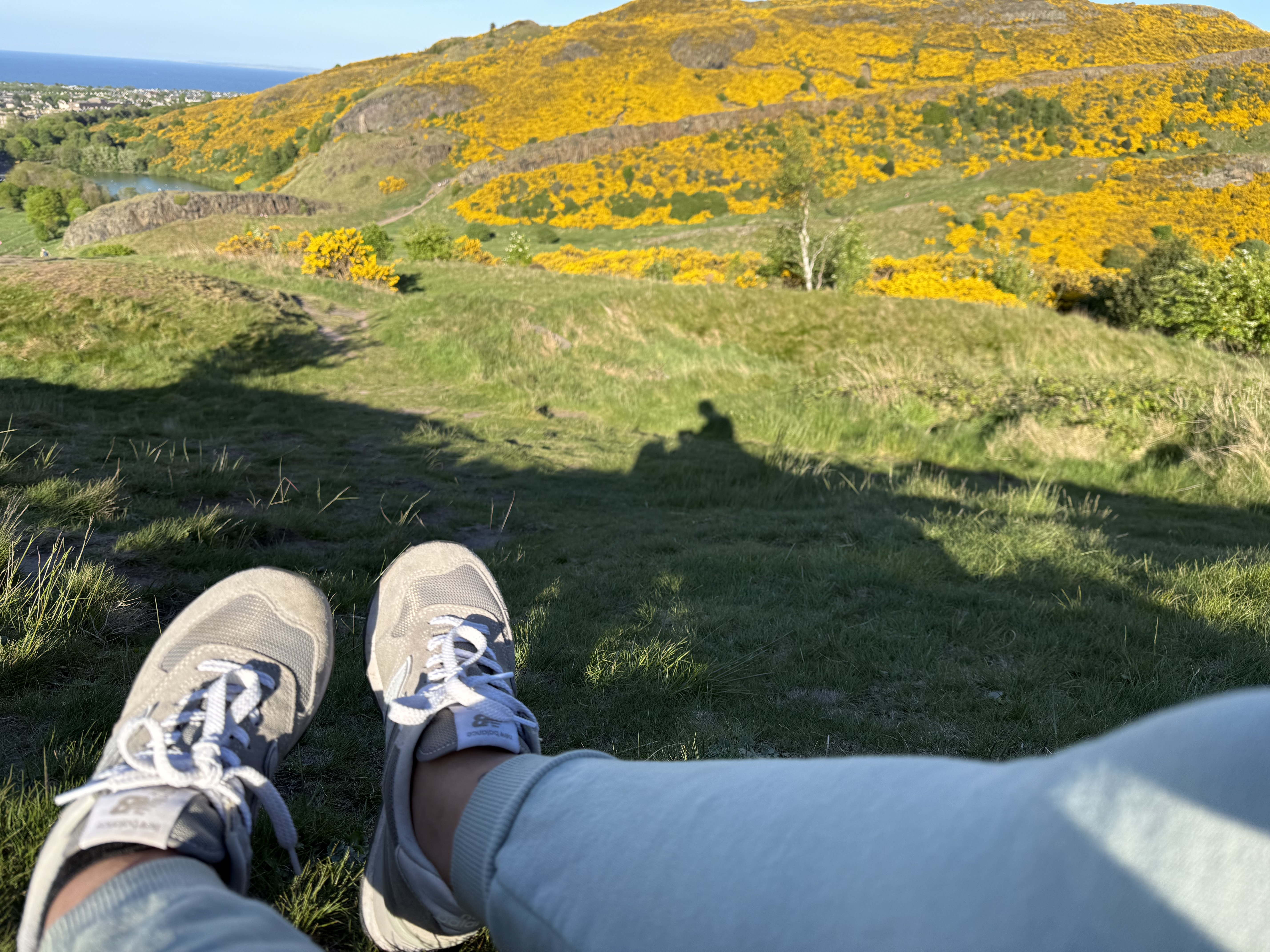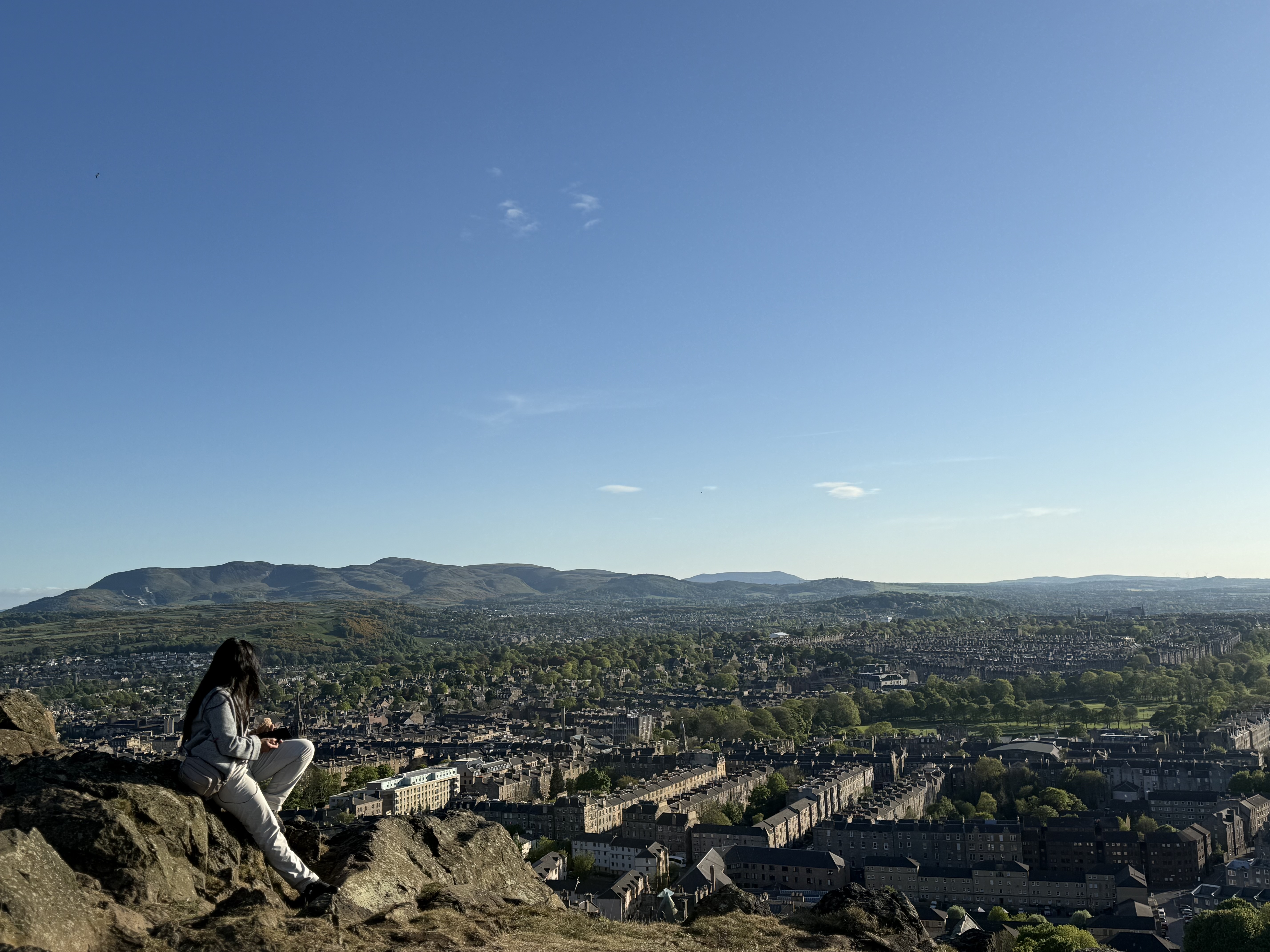 Reaching the top felt like stepping into a different world. The entire city stretched out beneath us: the Royal Mile cutting through the Old Town, the castle perched proudly on its volcanic rock, and the North Sea shimmering in the distance. The wind was strong enough to wake every sense, cool and refreshing in a way that made you feel alive and present.